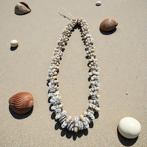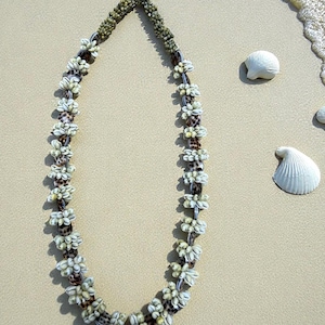 Hawaiian lei made with dark green and orange croton artificial silk leaves, maka hipa sea beans and brown mongo shells. There are about 120 croton silk leaves. Color is slightly different due to lightening. Please message me for any questions. Mahalo! Length is about 20 inches.