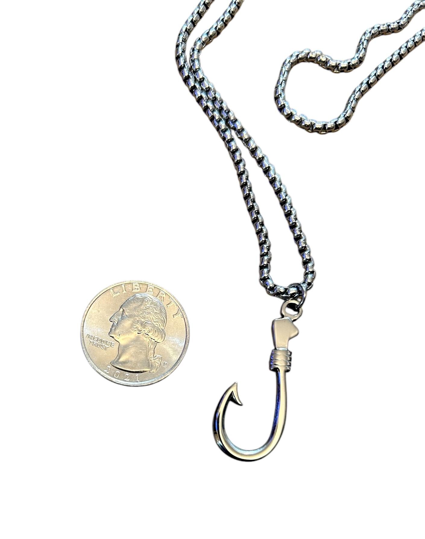 Hawaiian stainless steel fish hook pendant with 3mm stainless steel chain. Chain is about 23" long.