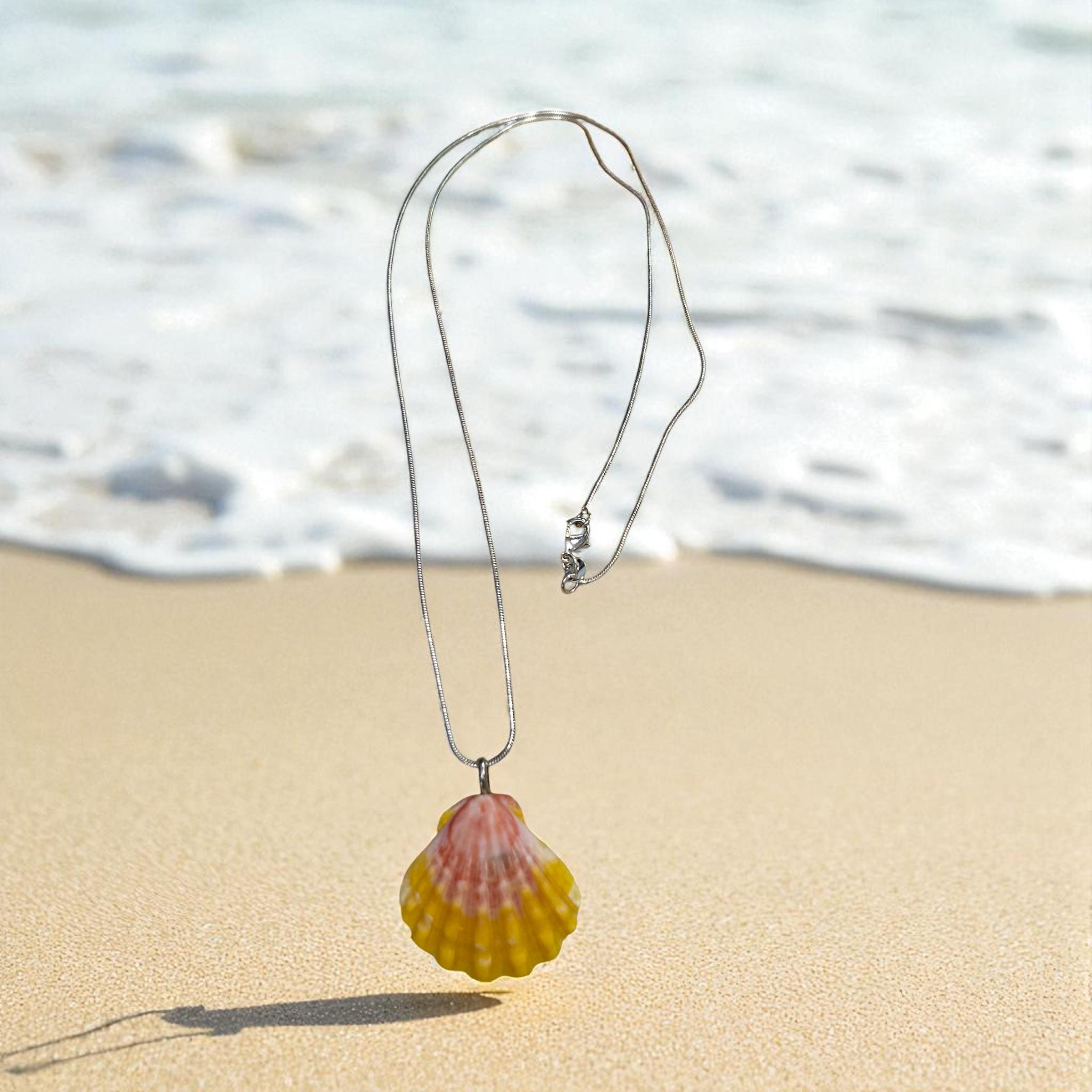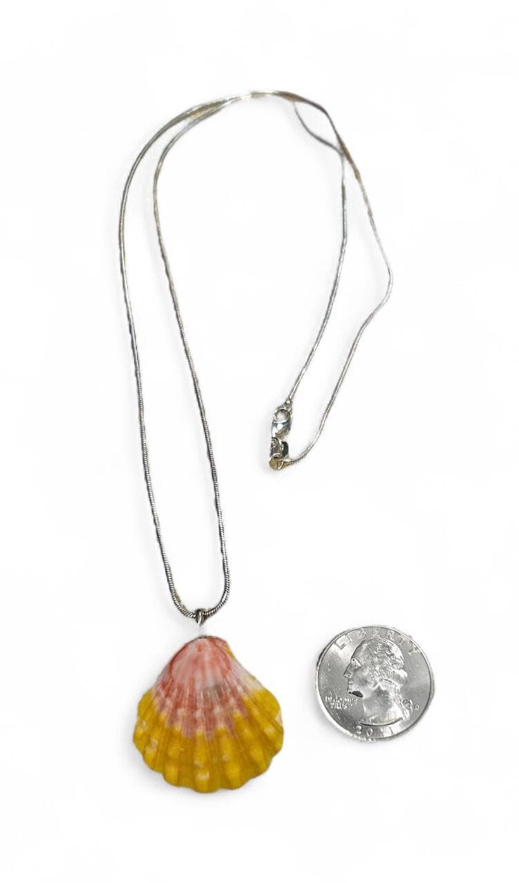 Sterling silver chain necklace with Hawaiian yellow pink sunrise shell. Color is slightly different due to lightening. Please message me for any questions. Mahalo!