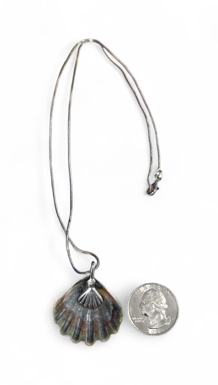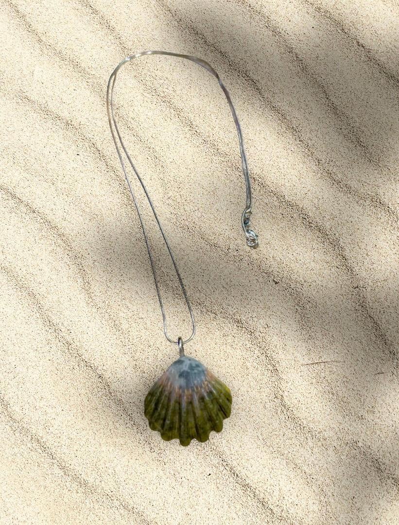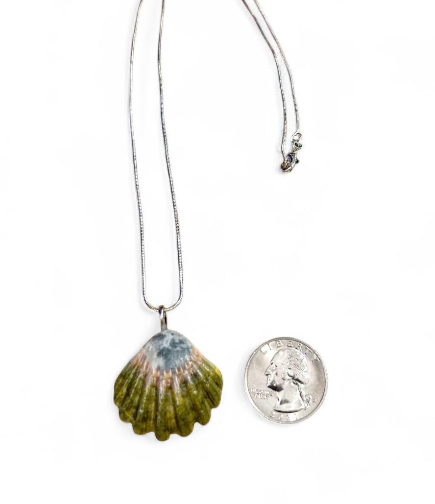 Sterling silver chain necklace with Hawaiian green sunrise shell. Color is slightly different due to lightening. Please message me for any questions. Mahalo!