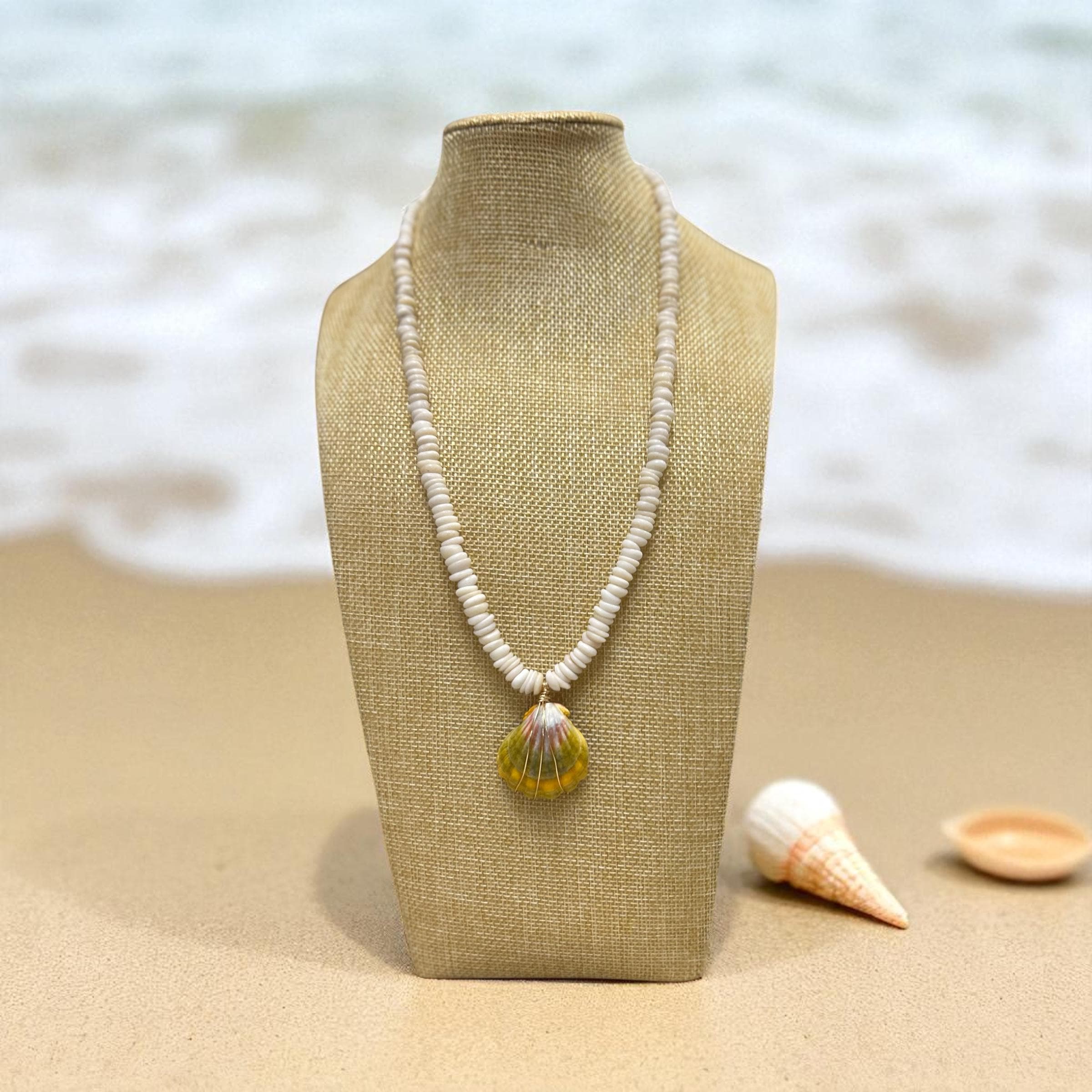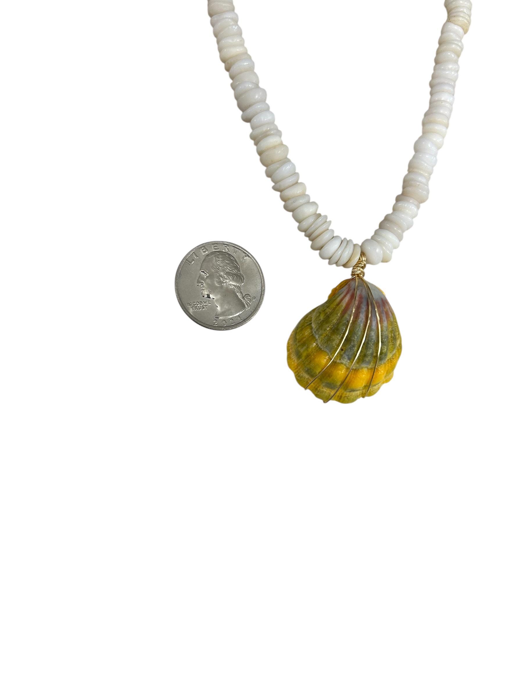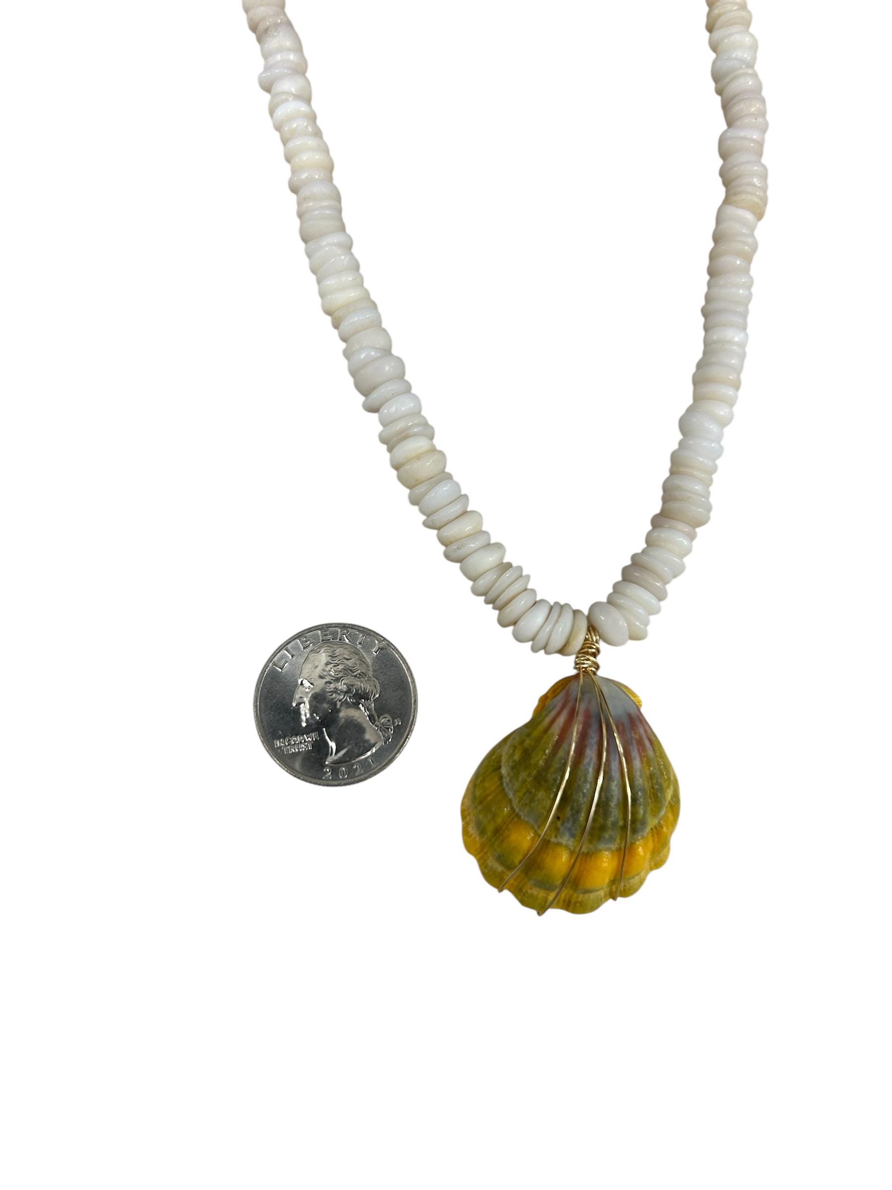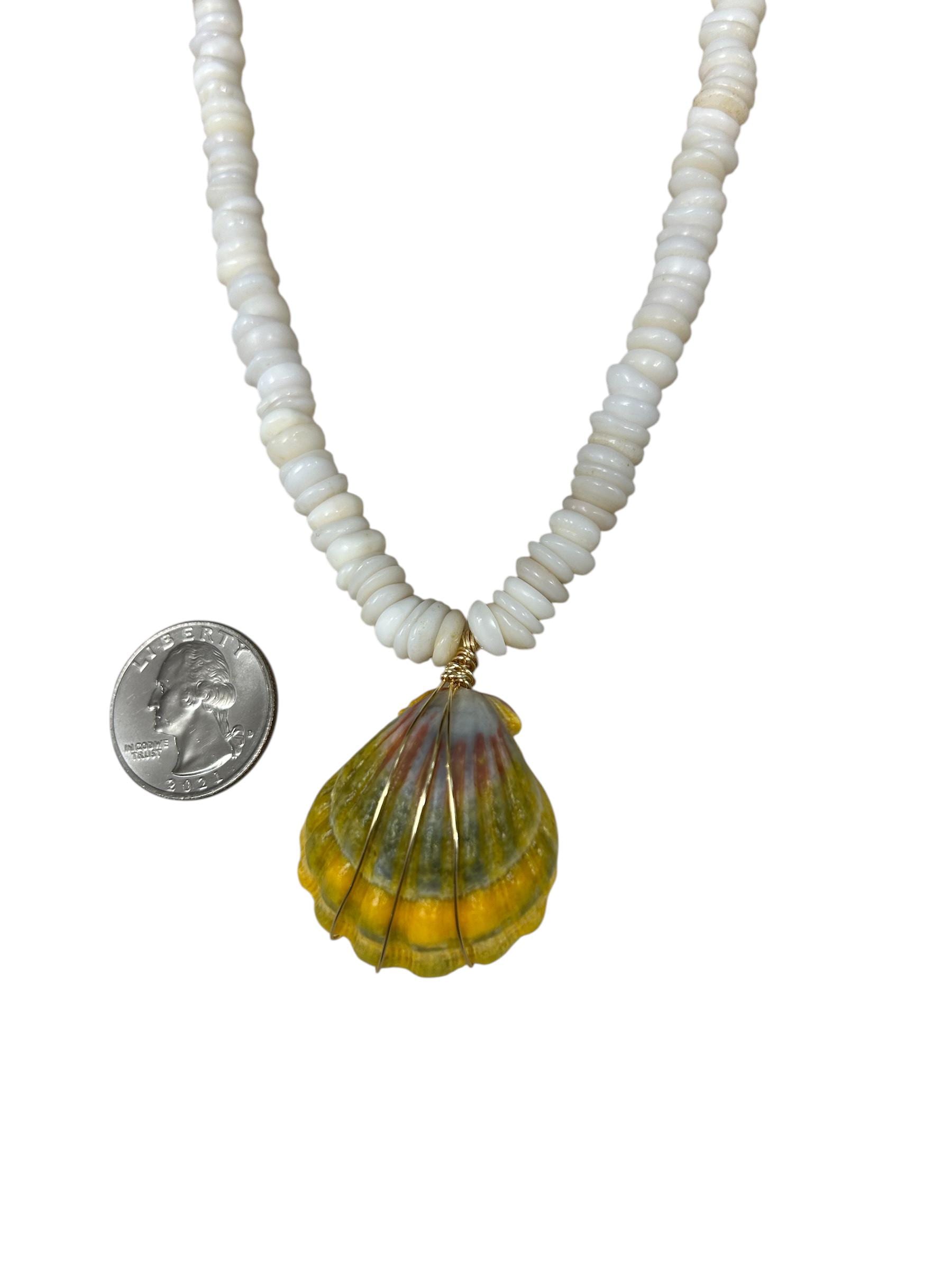 Hawaiian puka shells with pink, green & yellow sunrise shell. Genuine puka shells & sunrise shell from the beaches of Hawaii. Shells are a natural material so shape, color and size will vary. Please contact me with any questions. Mahalo!