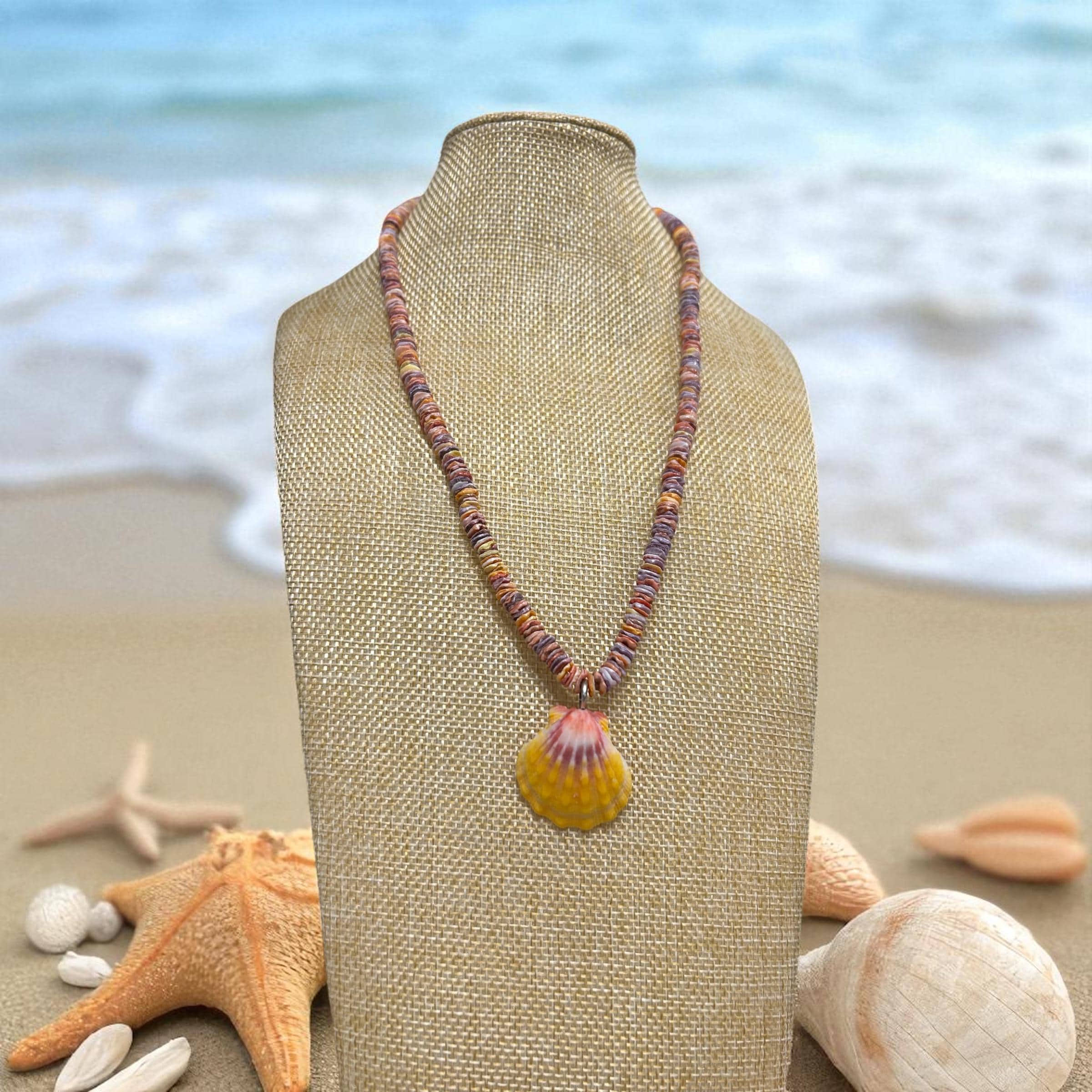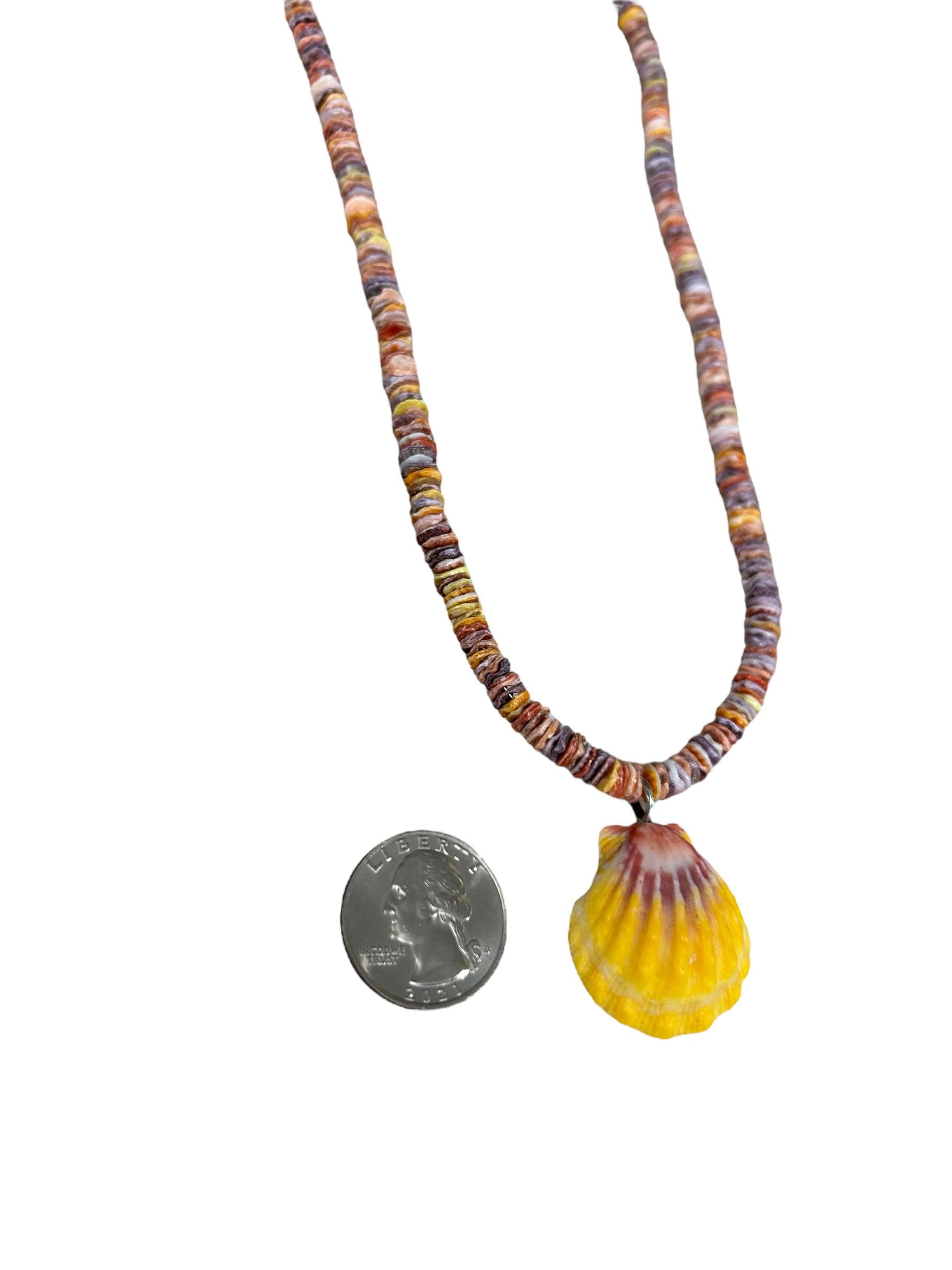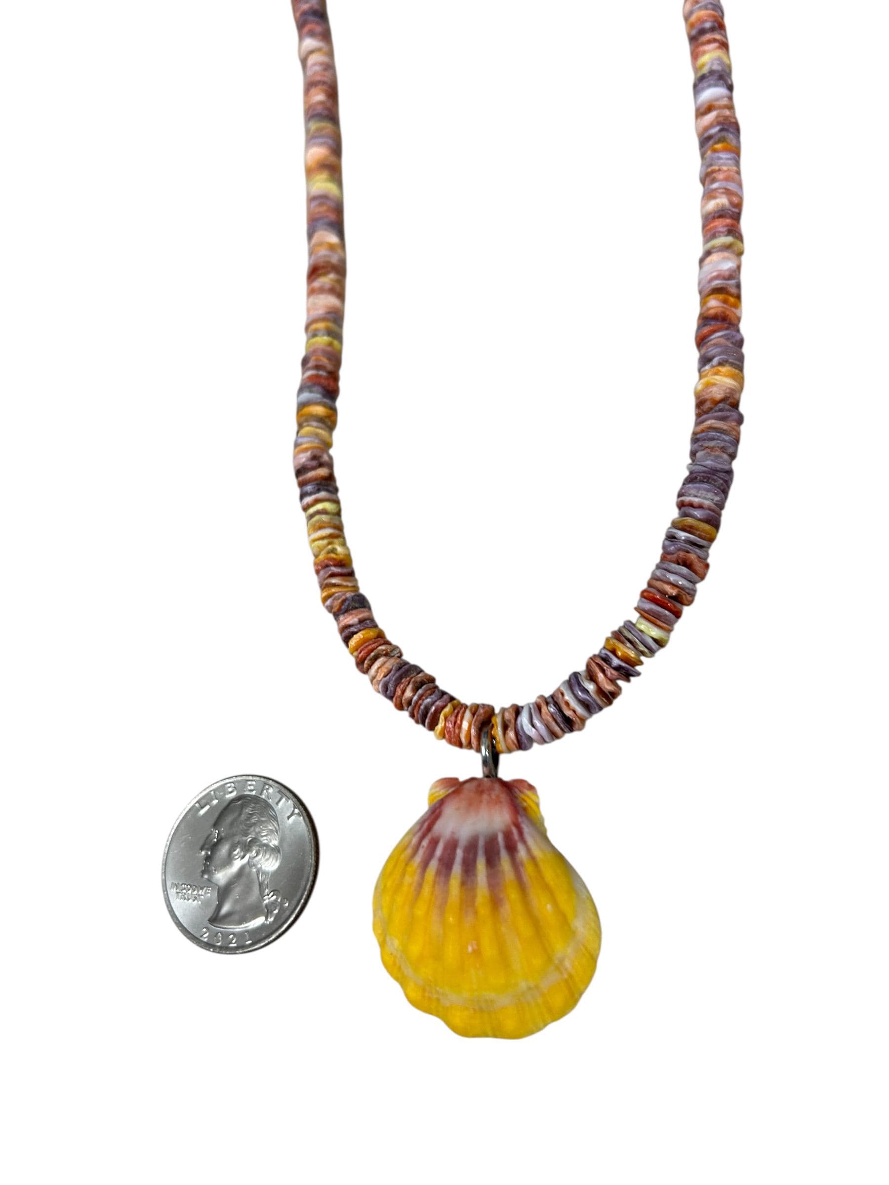 Natural colorful sea scallops chips with yellow and pink sunrise shell. Shells are a natural material so shape, color and size will vary. Please contact me with any questions. Mahalo!